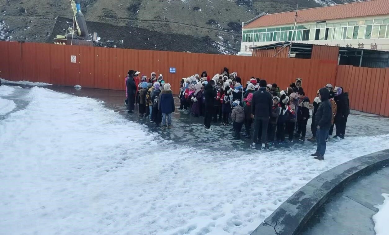 目光所及的阿科里乡中心校,坐落于平均海拔4200米的阿坝之巅,这里年均气温仅3.3℃,最低可达零下23℃。自1996年建校以来,这所寄宿制学校在风雪中坚守,承担着223名孩子从幼儿到小学的教育重任。然而,严酷的自然环境也让学校在住宿、取暖、教学配套等方面长期面临挑战,成为全县重点帮扶的学校之一。