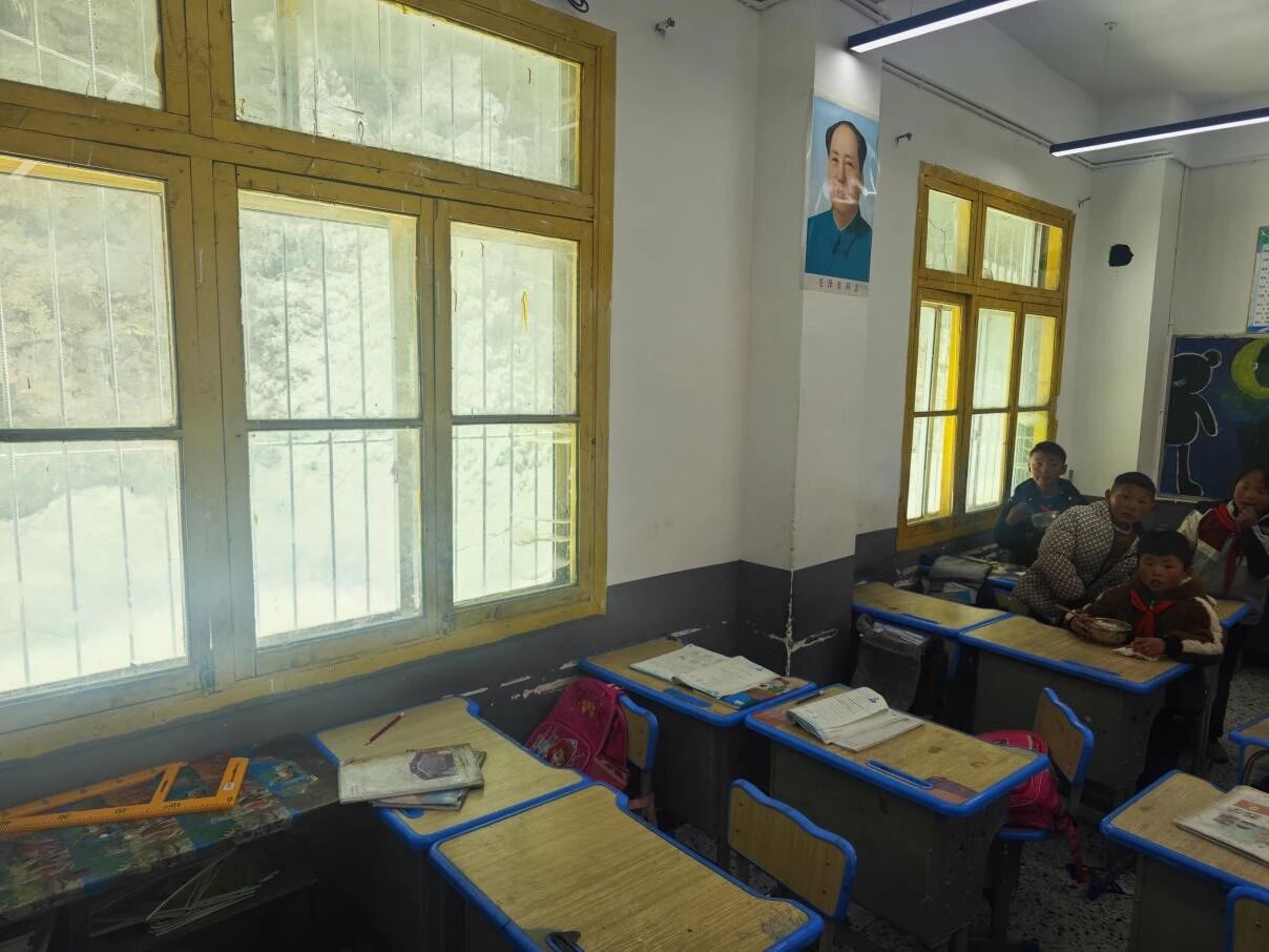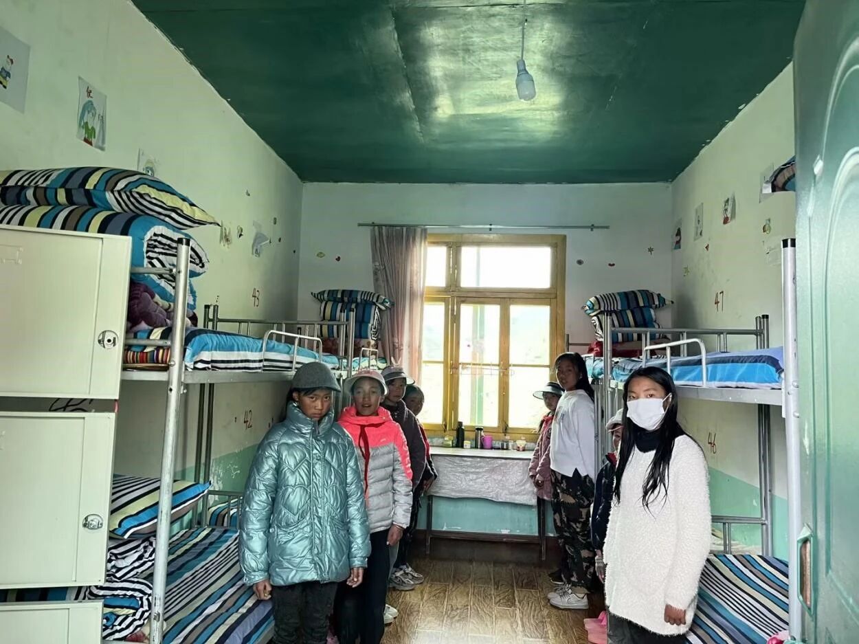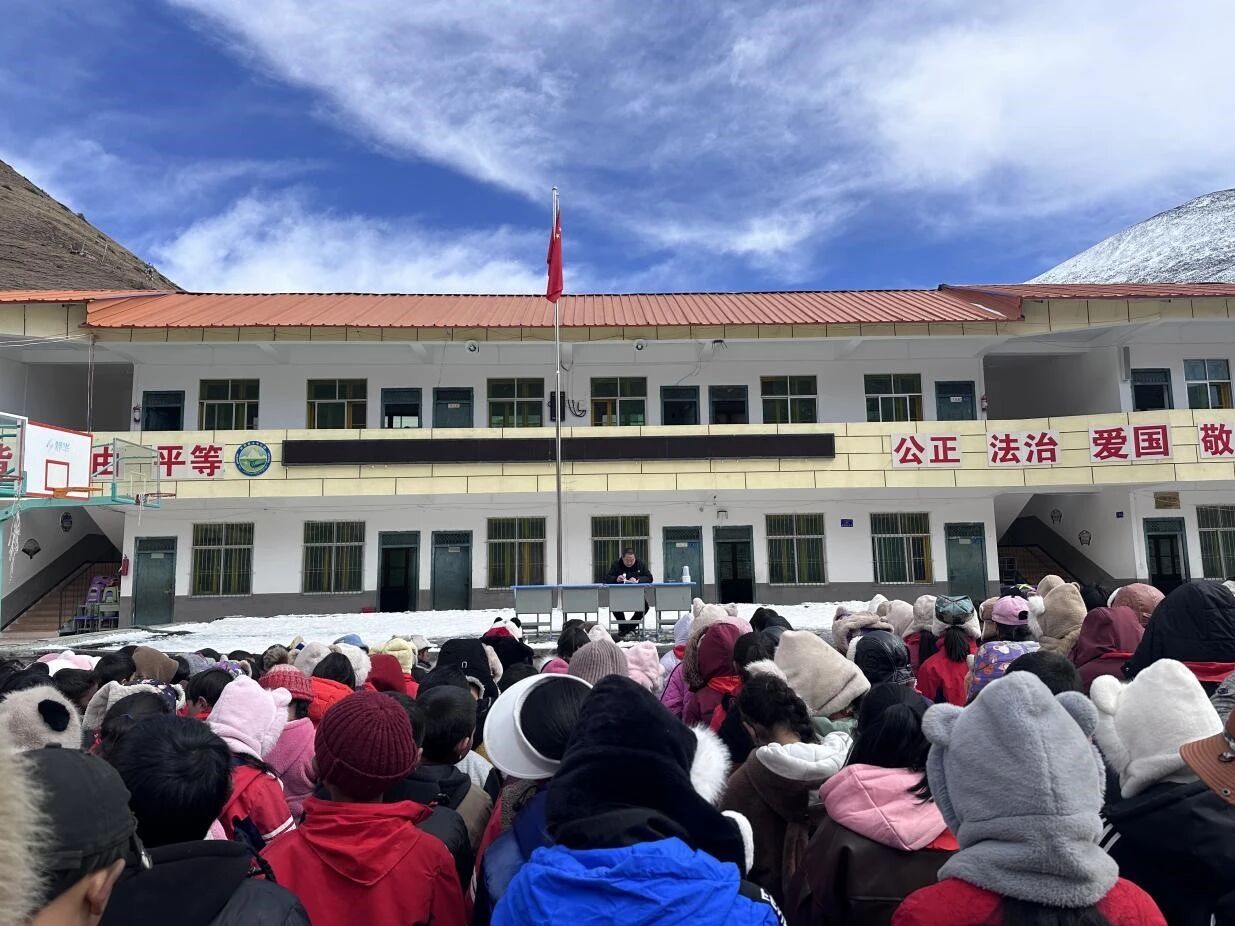 目光所及的阿科里乡中心校,坐落于平均海拔4200米的阿坝之巅,这里年均气温仅3.3℃,最低可达零下23℃。自1996年建校以来,这所寄宿制学校在风雪中坚守,承担着223名孩子从幼儿到小学的教育重任。然而,严酷的自然环境也让学校在住宿、取暖、教学配套等方面长期面临挑战,成为全县重点帮扶的学校之一。