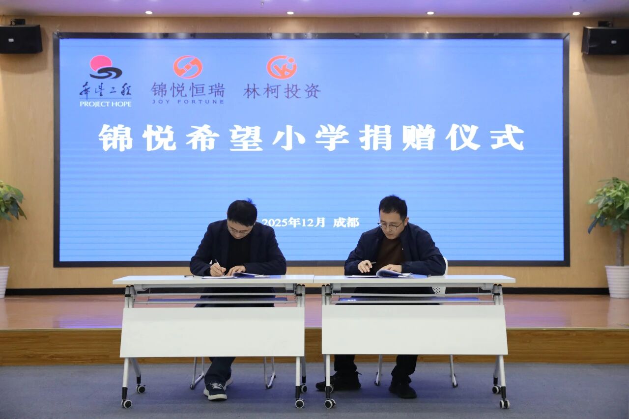 2025年12月1日,“锦悦希望小学”签约仪式在四川省青少年公益馆温暖举行。锦悦恒瑞总经理刘熙钰与四川省青少年发展基金会理事长张建强共同签署协议,完成捐赠授牌。这一刻,阿科里乡中心校正式冠名为“锦悦希望小学”,标志着一段全新历程的开启。